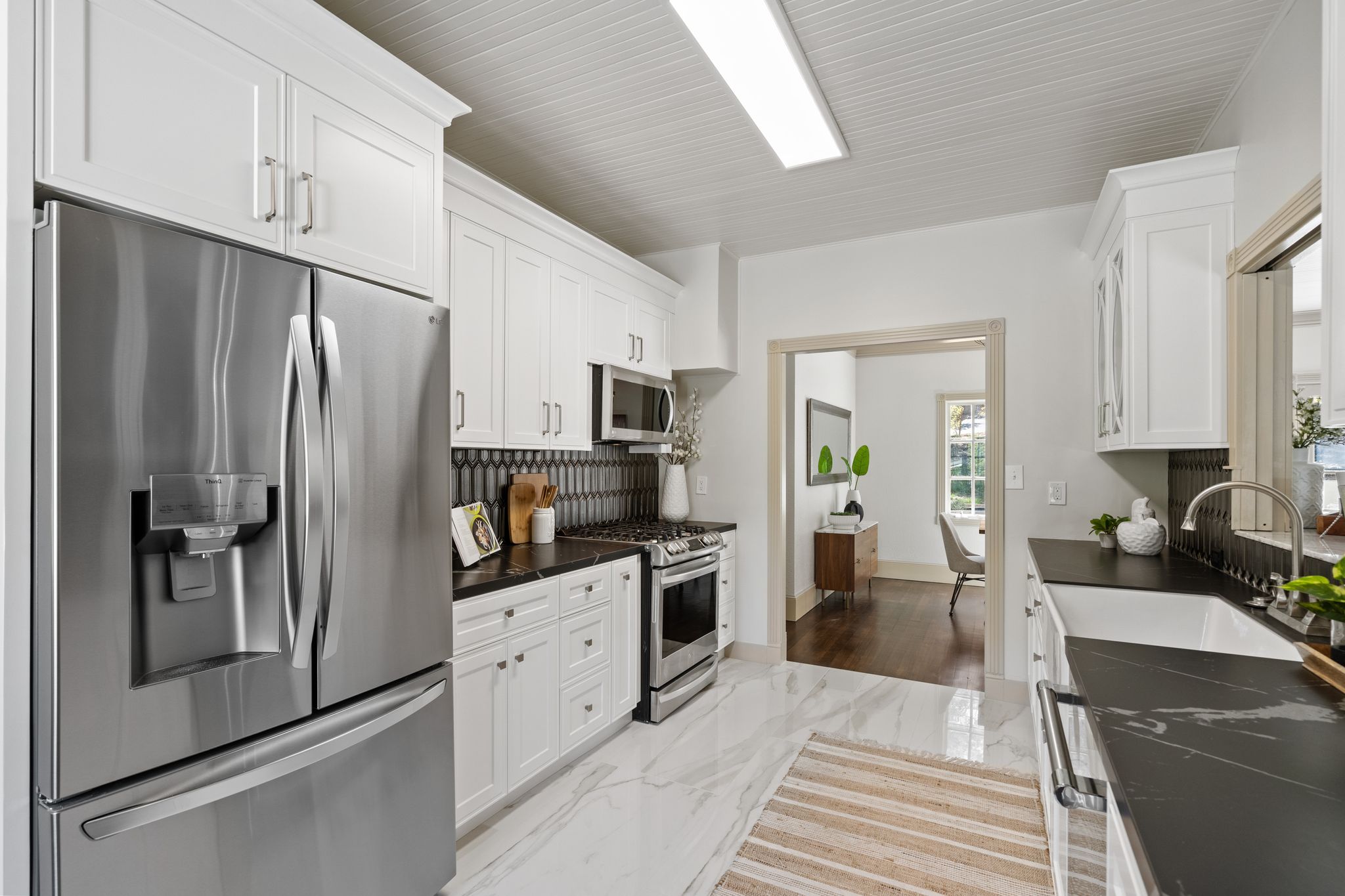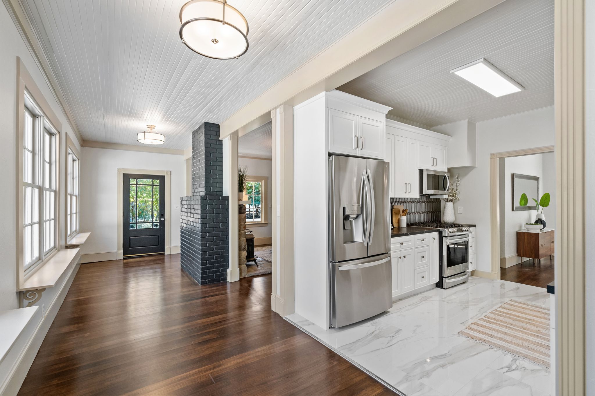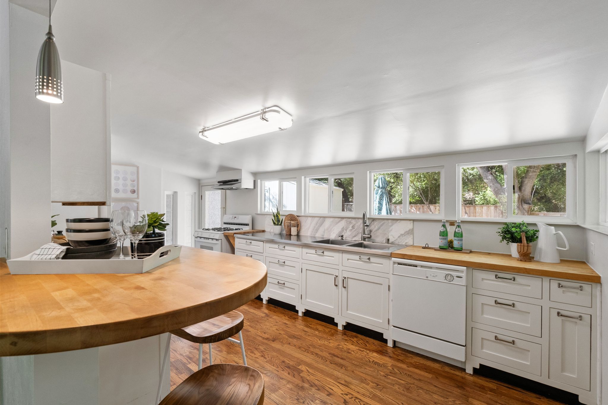 - Kitchen: Installed hardiebacker and tile, installed cabinets & hardware, installed undermount sink & faucet, installed disposal and air switch, installed countertops, installed backsplash, installed range, installed extractor fan, installed microwave, installed refrigerator (including water hook-up), installed dishwasher