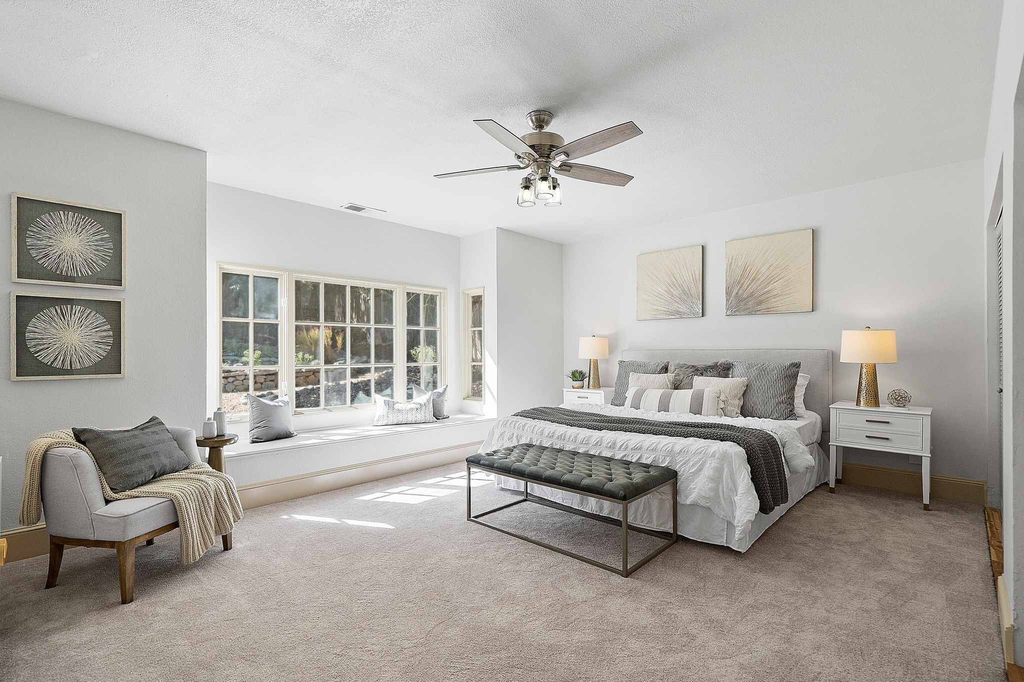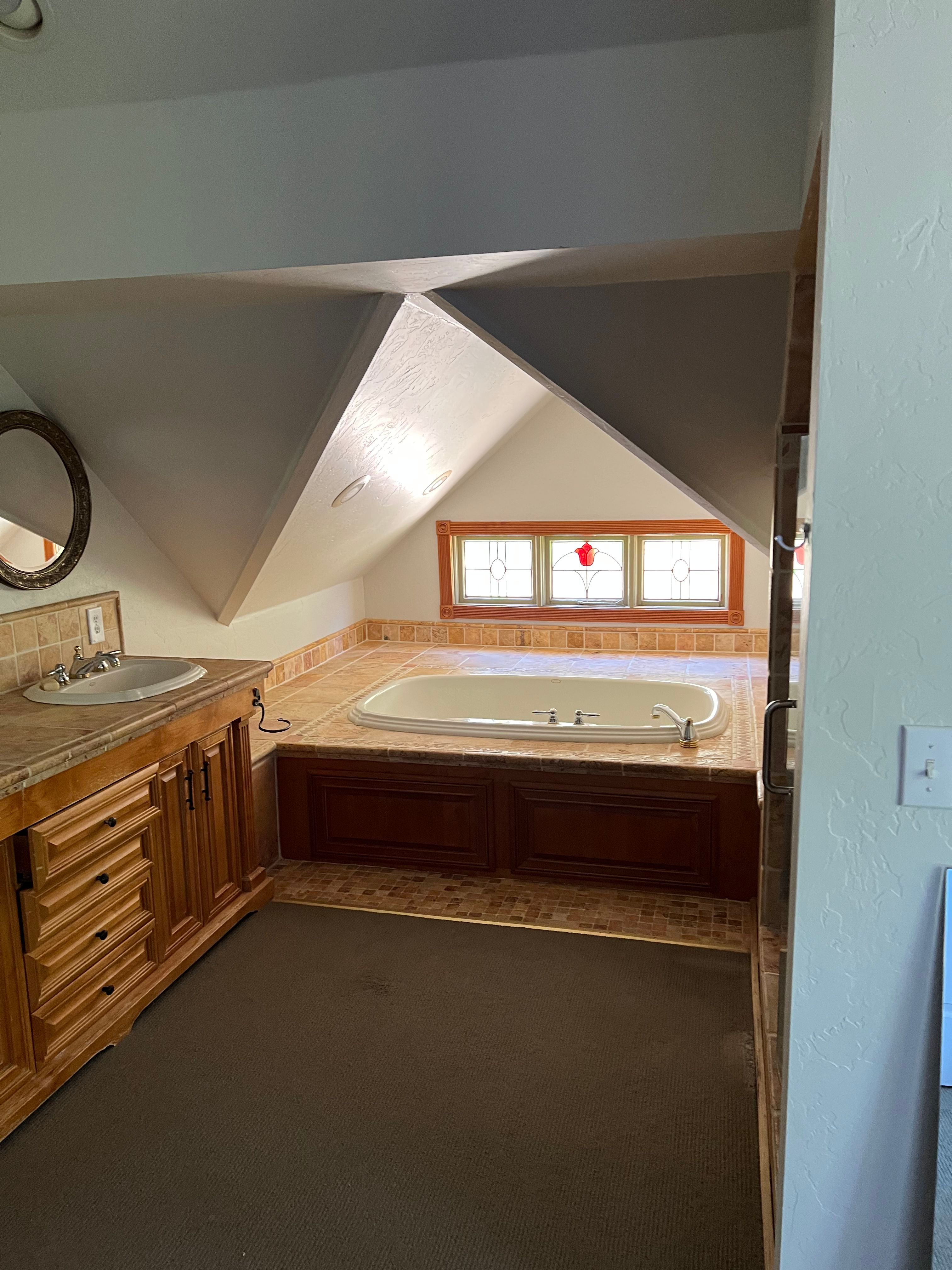 - Primary suite: Demolished existing drywall, framing, electrical, plumbing and flooring, new 2x4 framing to walls, relocated plumbing, relocated electrical, installed receptacles, switches and panel, installed new 5/8" drywall, taped and textured, painted complete interior