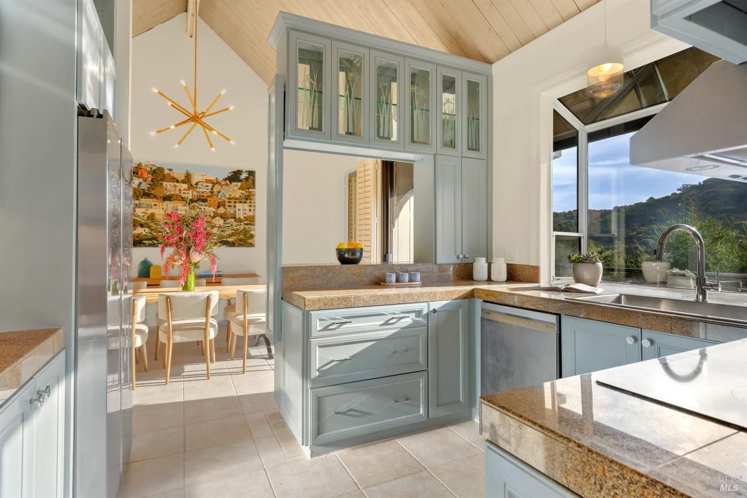 This home was extensively renovated by Freemodel’s Melissa Jones and Golden Gate Sotheby’s Marcia Skall, now it offers modern living with lowered floors for enhanced ceiling height, new LVT flooring, fresh paint, and updated lighting throughout. The open layout is accentuated by removed closets and opened walls, creating a spacious feel. The kitchen shines with painted cabinets, new hardware, an undermount sink, cooktop, extractor fan, and stainless steel appliances, complemented by a tiled backsplash. The primary suite features a refreshed bathroom with a frameless shower door, new vanity, and tile flooring, while the primary bedroom boasts new trim and crown molding. The guest bathroom is completely updated with a new bathtub, vanity, and stylish fixtures, and the powder room features a new vanity, faucet, and mirror. Exterior updates include a repainted and Gaco-coated deck, and touch-up painting, ensuring a polished finish both inside and out.