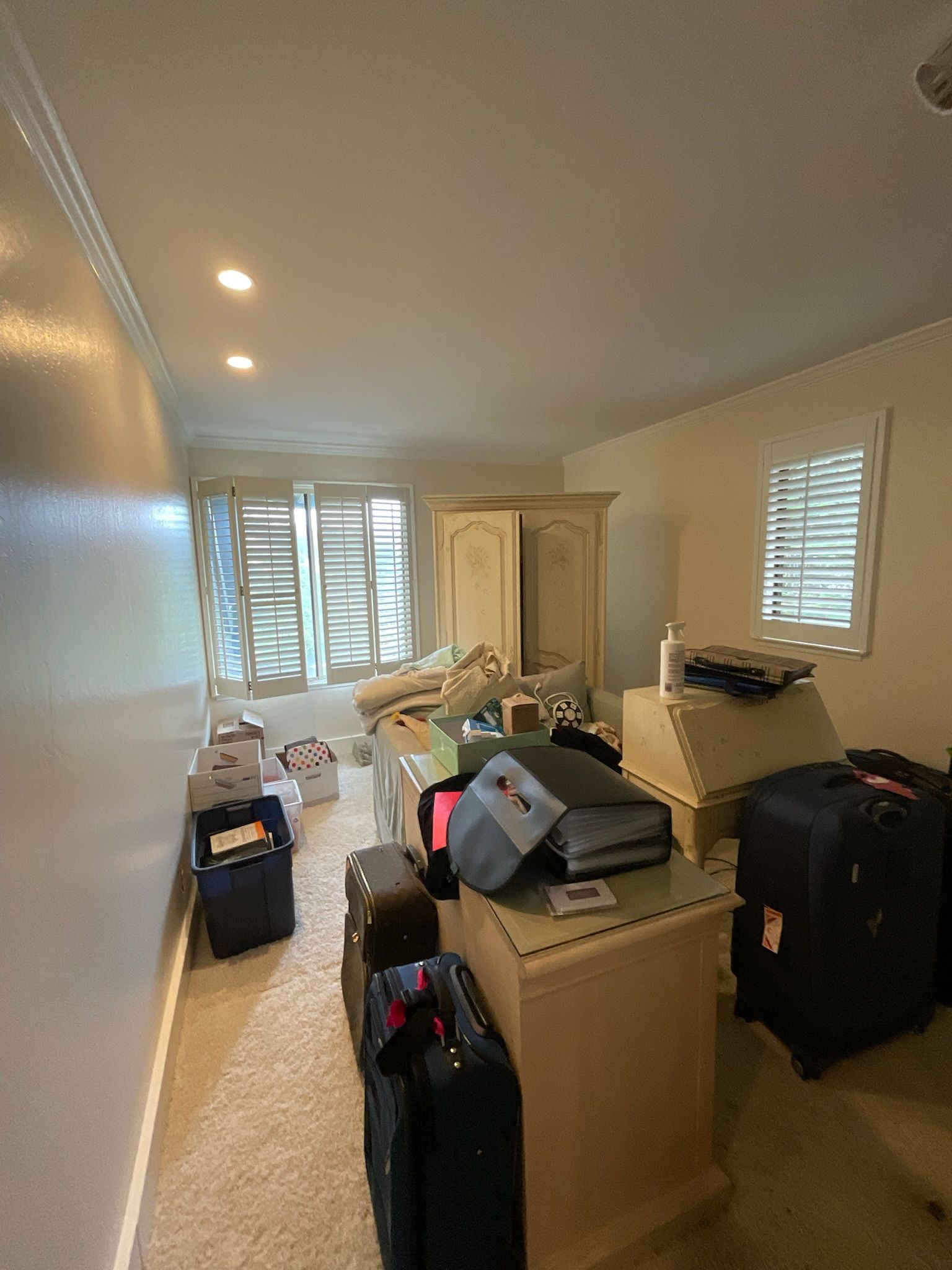 - Primary Bedroom: Caulked, primed and painted, added new trim around slider and crown molding