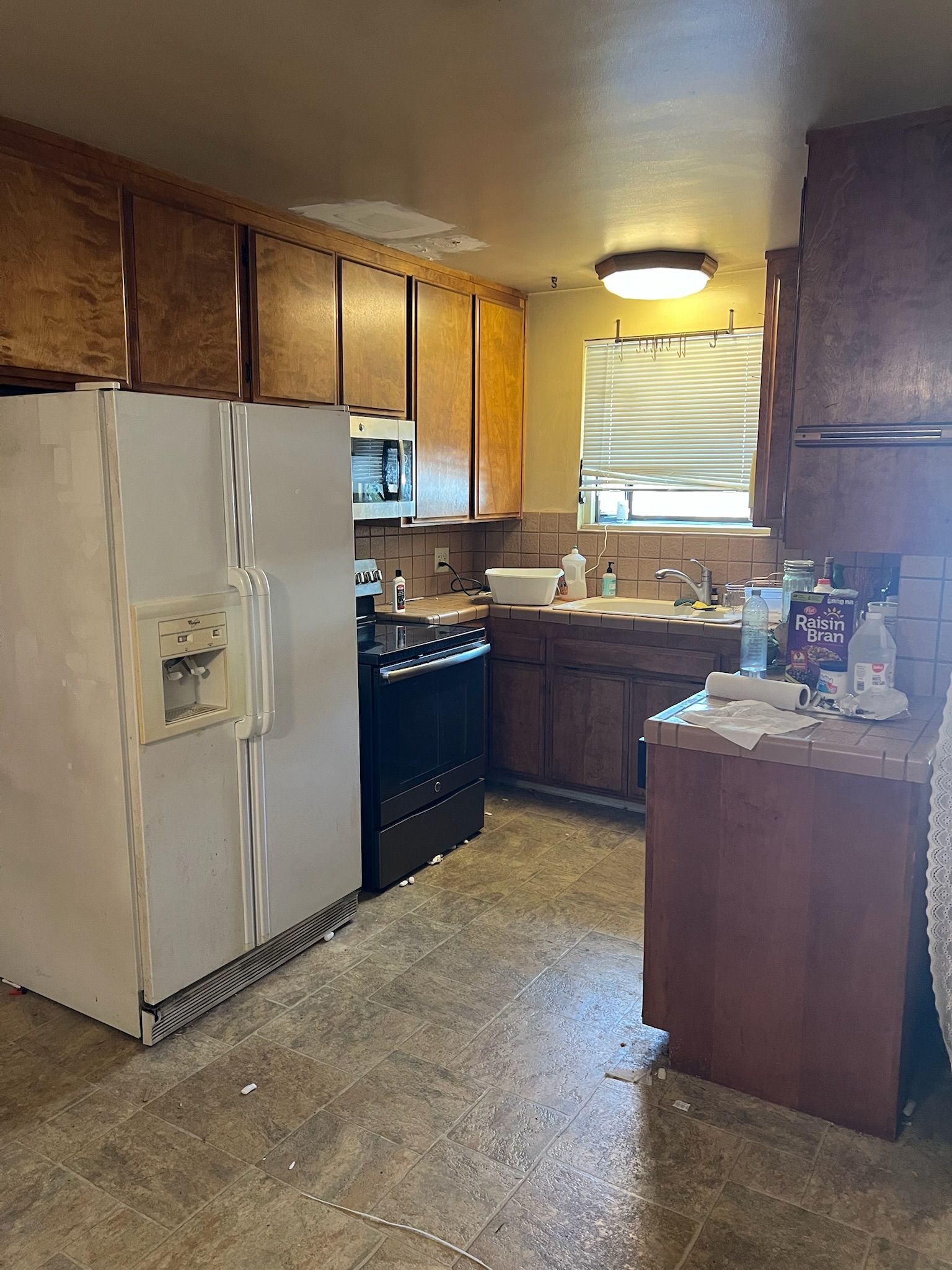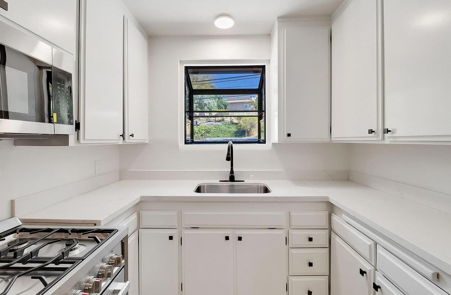 - Kitchen: Installed new vinyl flooring, installed new quartz countertops, installed new refrigerator, installed new range, installed new microwave, installed dishwasher, installed kitchen faucet, installed garbage disposal, installed hinges & knobs in cabinets.