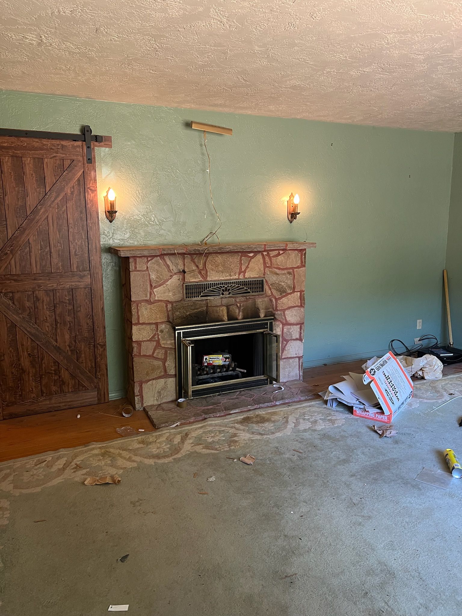 - Living Room: Installed wall sconces, patched & painted fireplace.