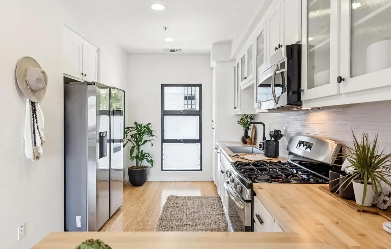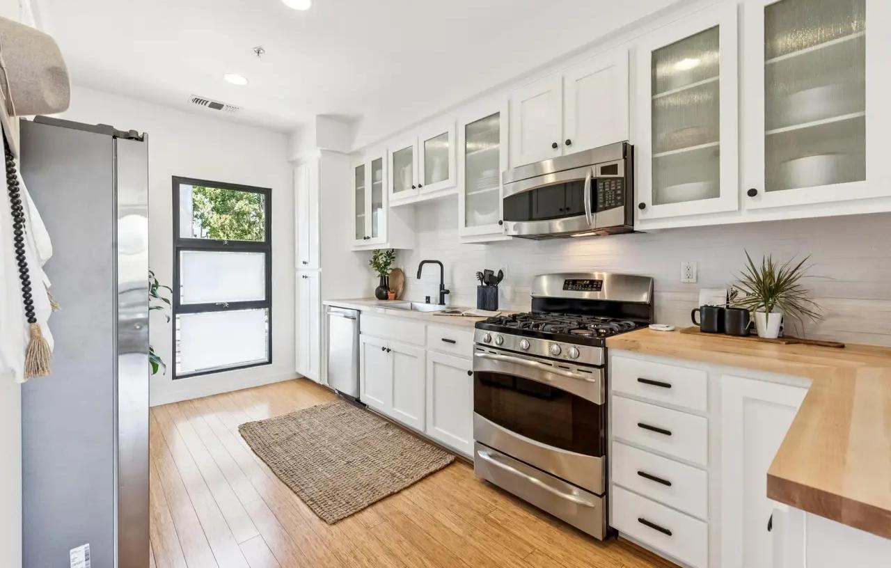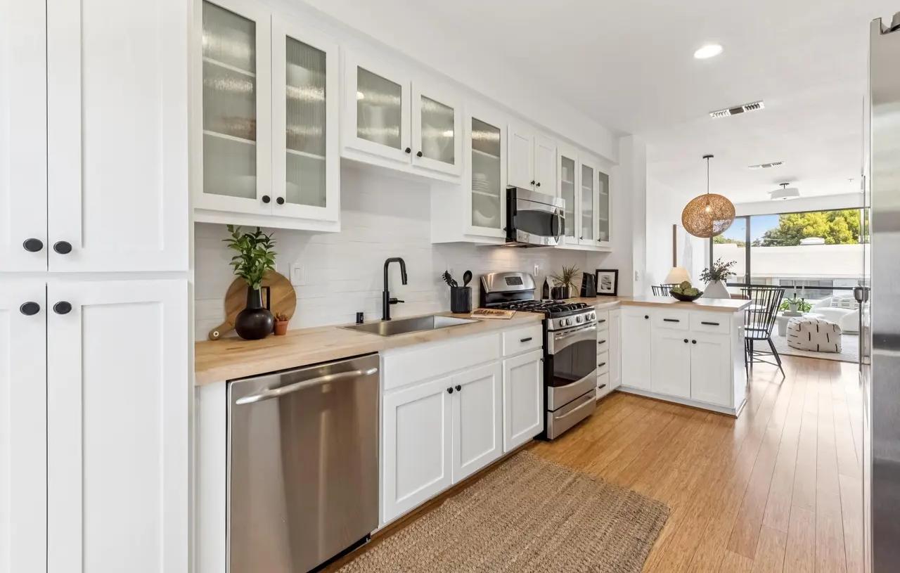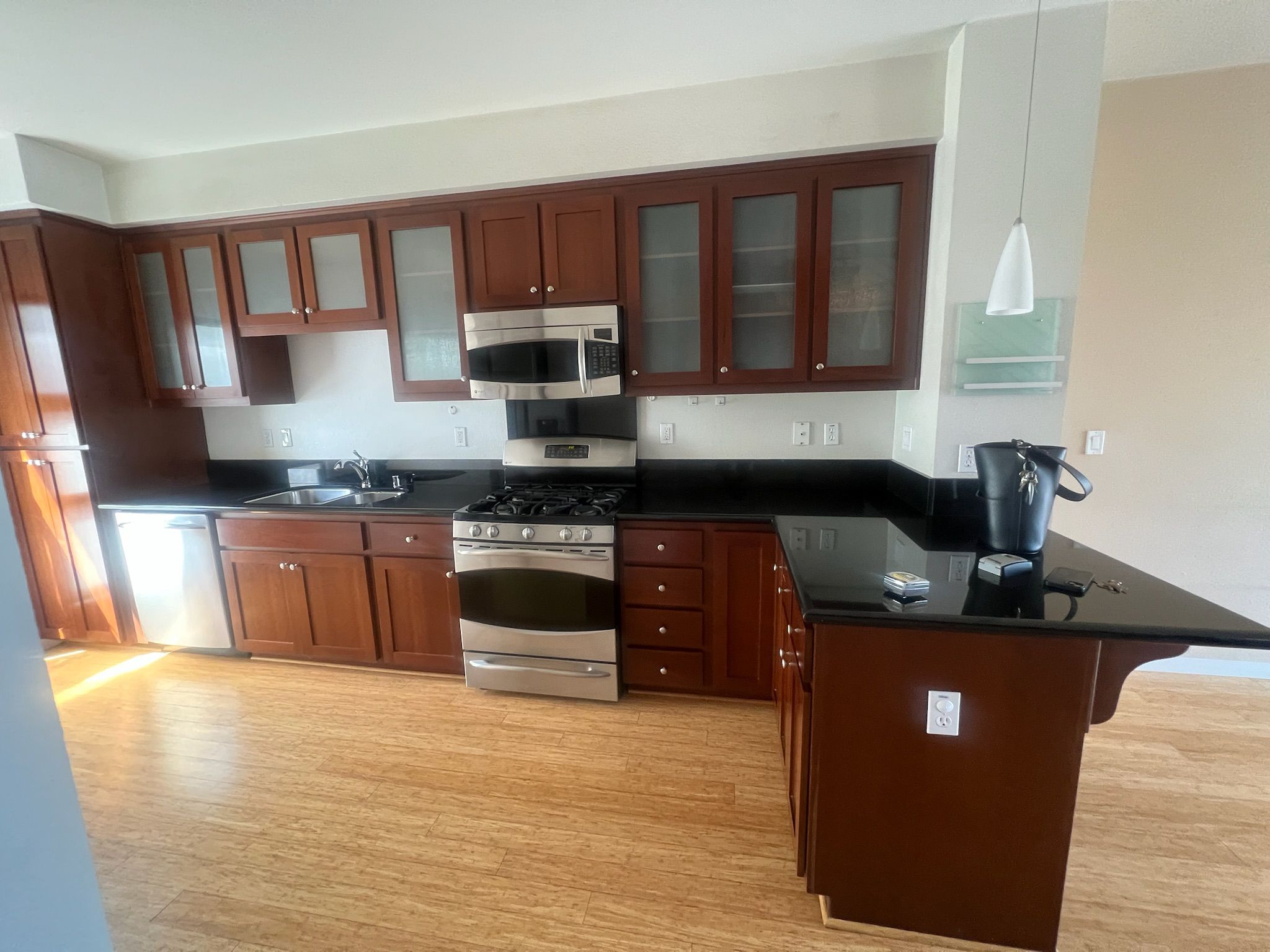 - Kitchen: Removed pendant above peninsula, installed cabinet hardware, installed undermount sink & faucet, installed countertops, installed backsplash, painted kitchen cabinets.