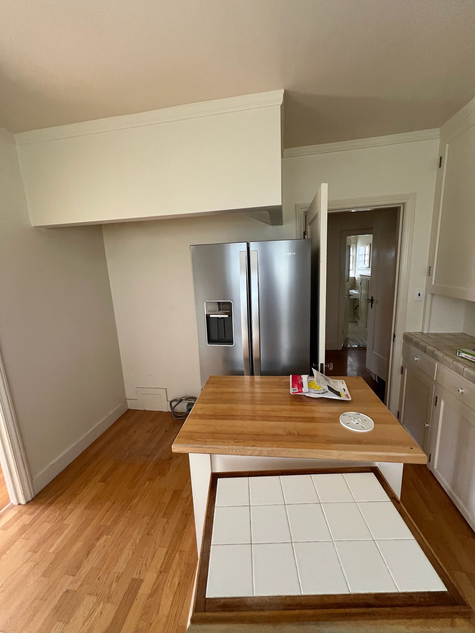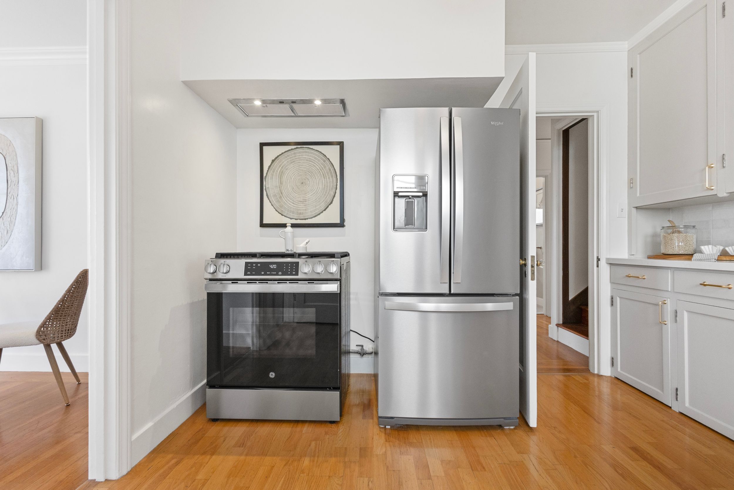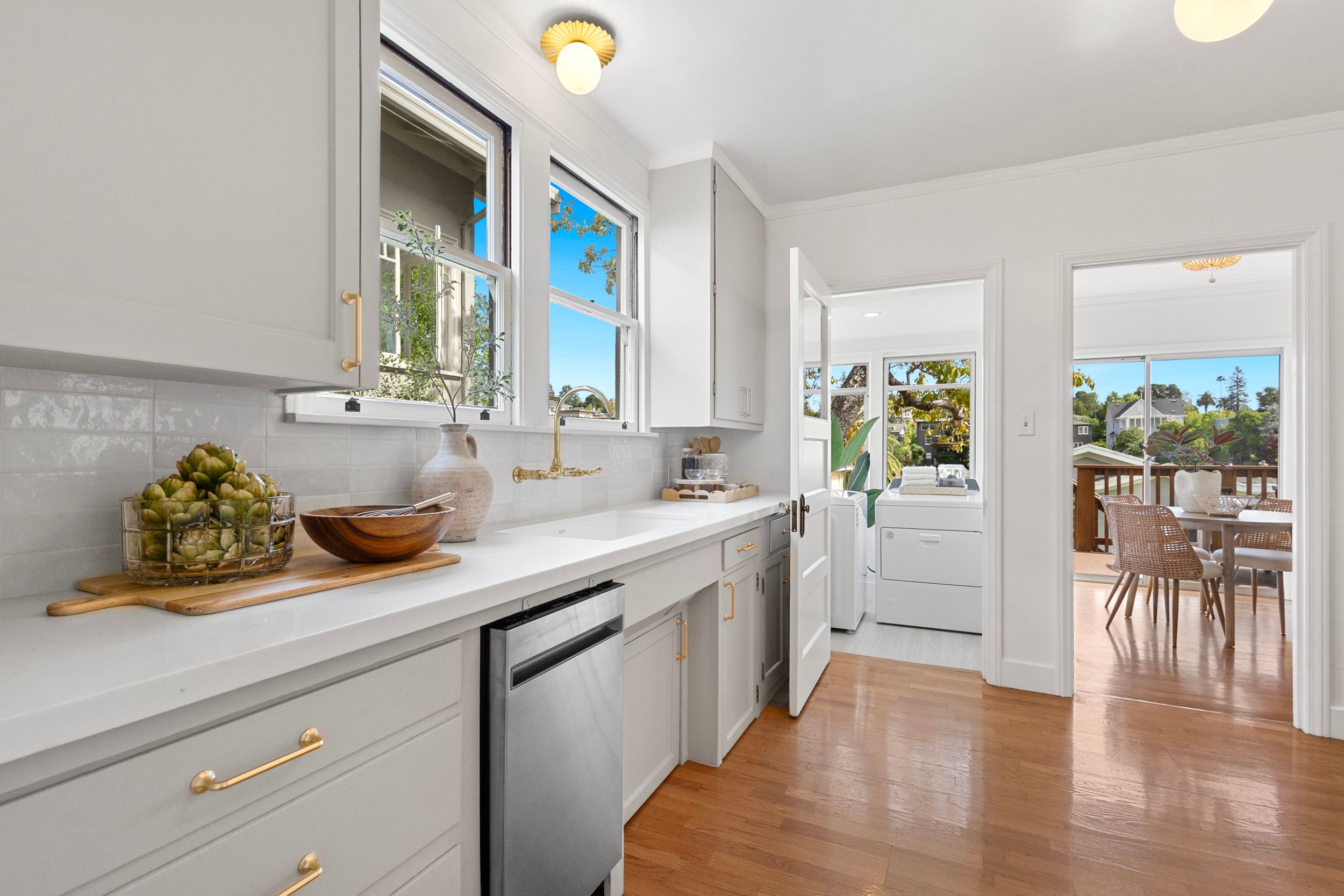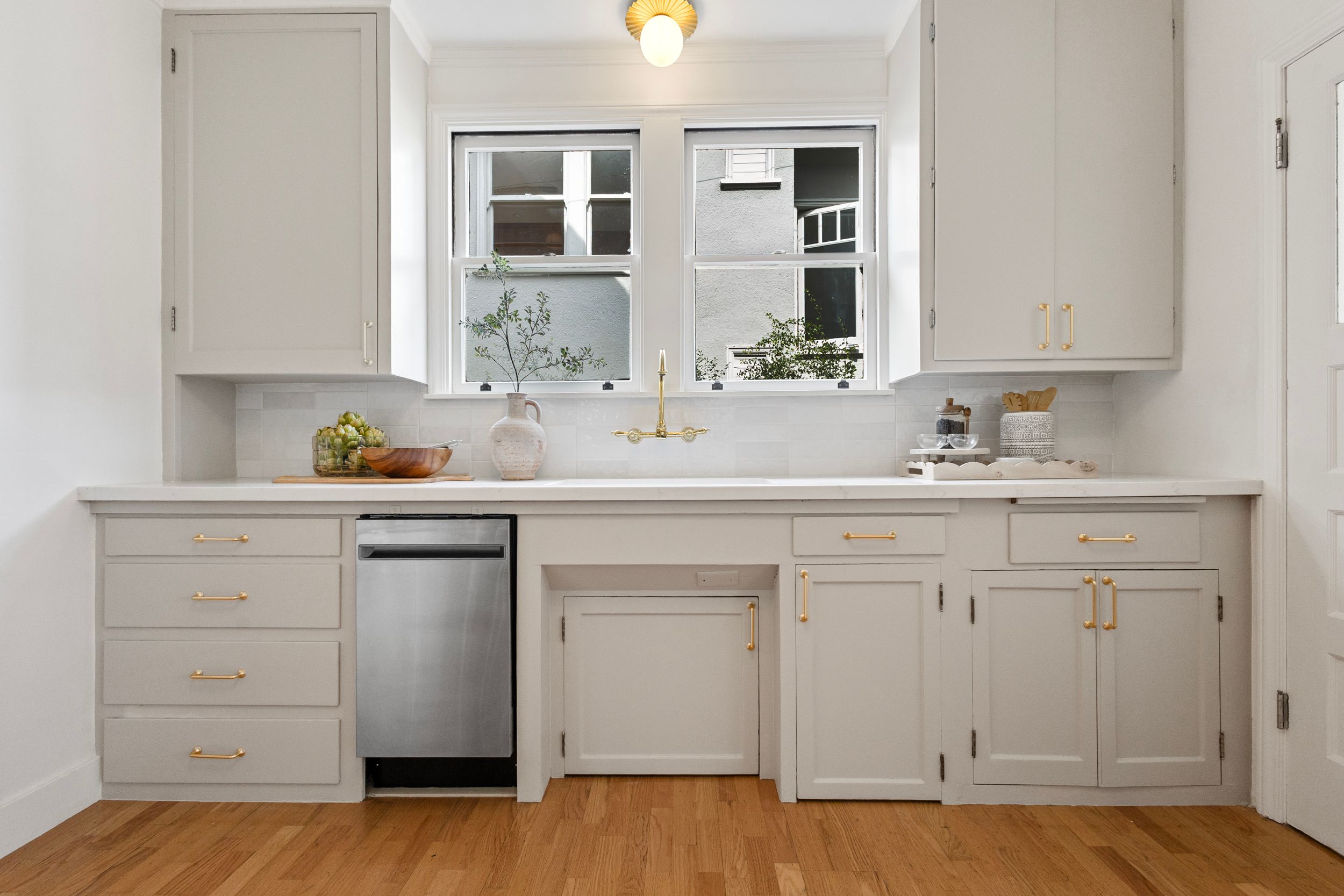 - Kitchen: Replaced flush mount light, replaced pendant, installed countertop & sink, installed kitchen faucet, installed backsplash, installed cabinet hardware, installed dishwasher, installed range, painted kitchen cabinets, installed hood vent& frame.