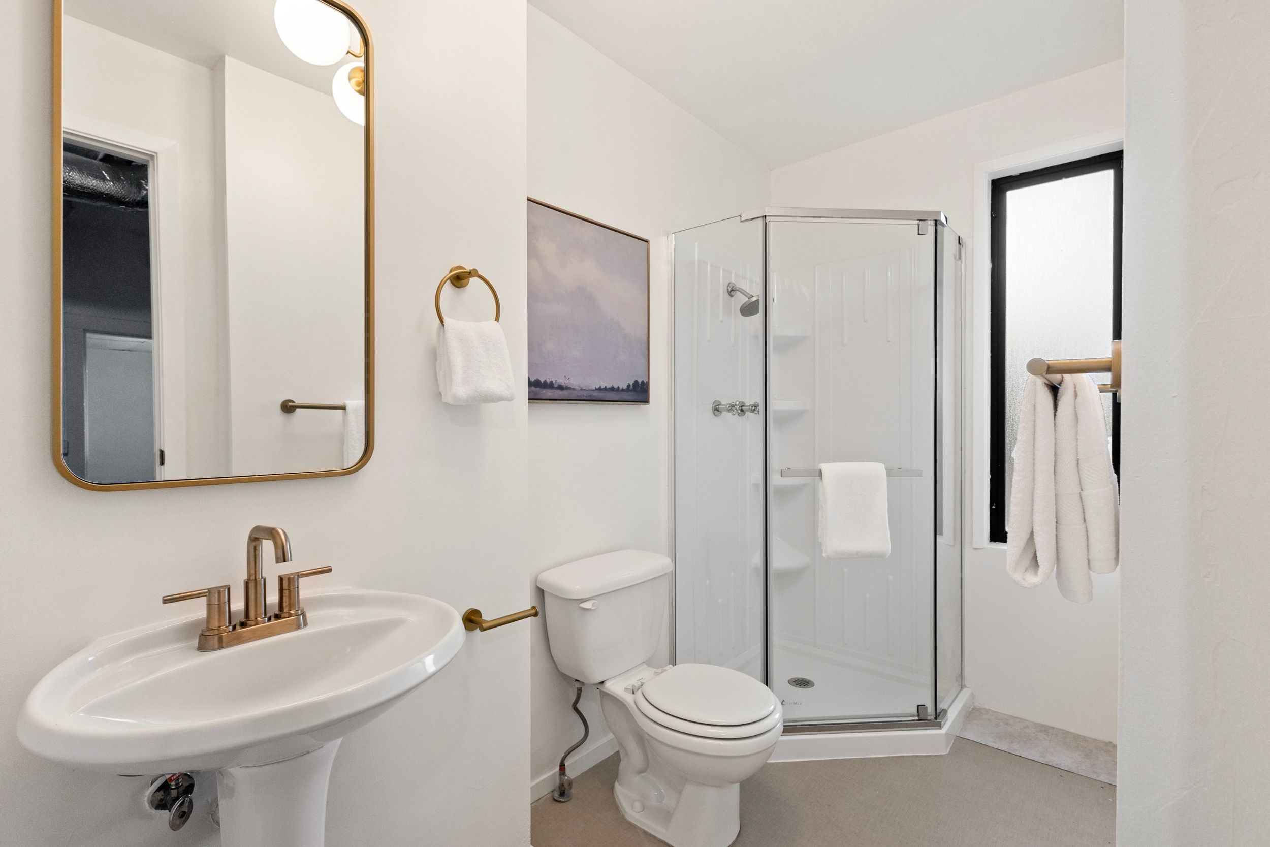 - Basement Bathroom: Replaced vanity mirror, repaired shower head leak, replaced bathroom lights, installed bath accessories.