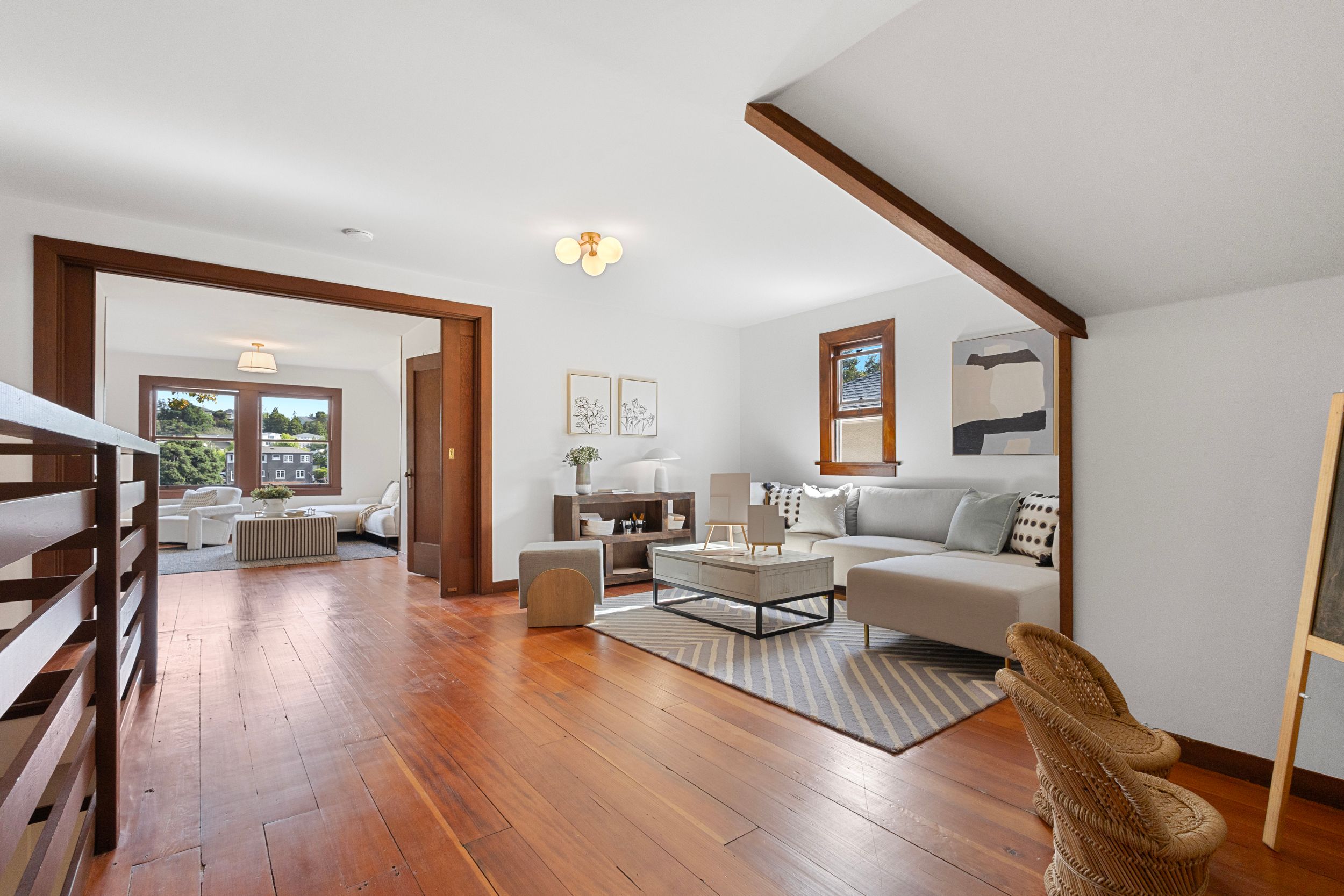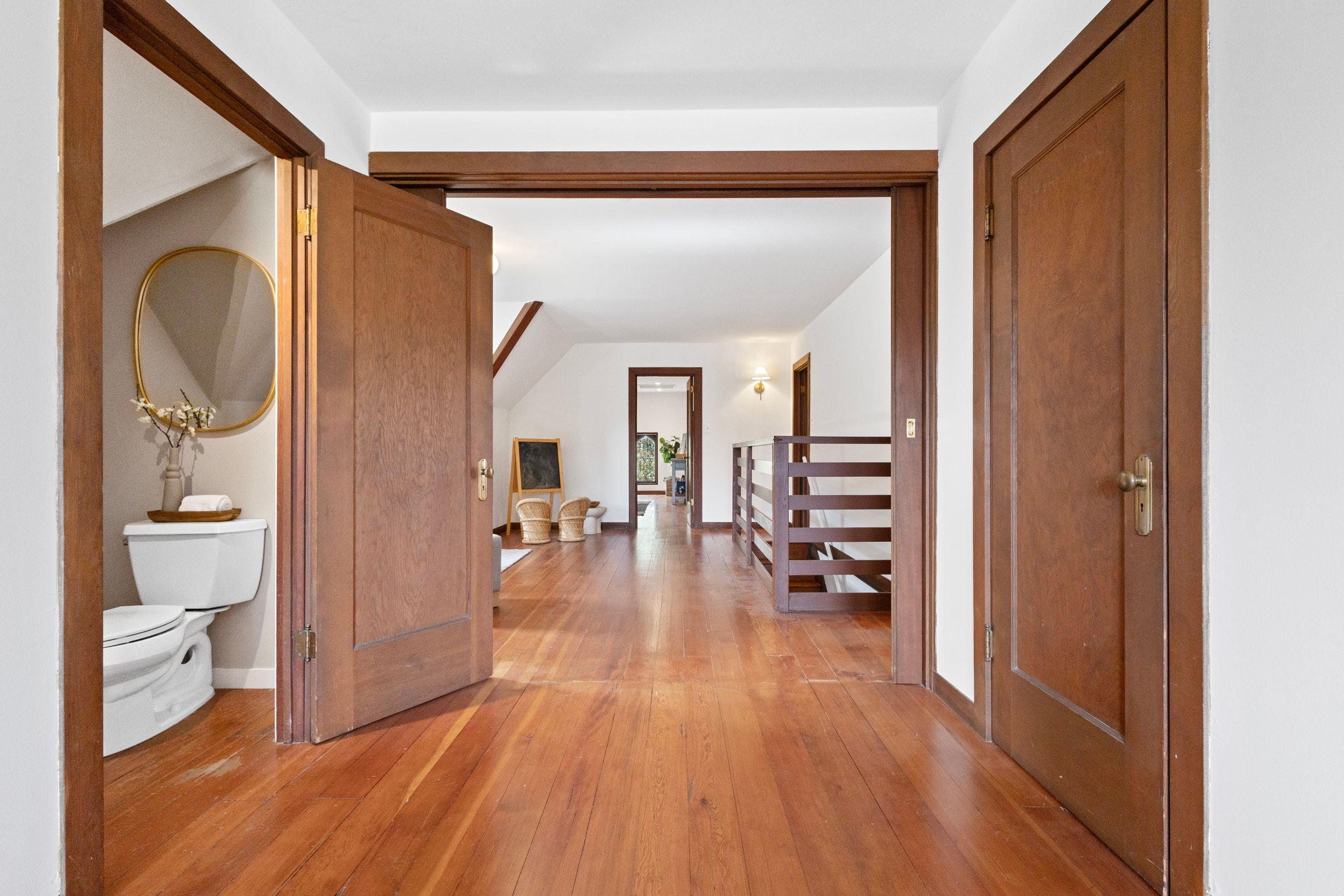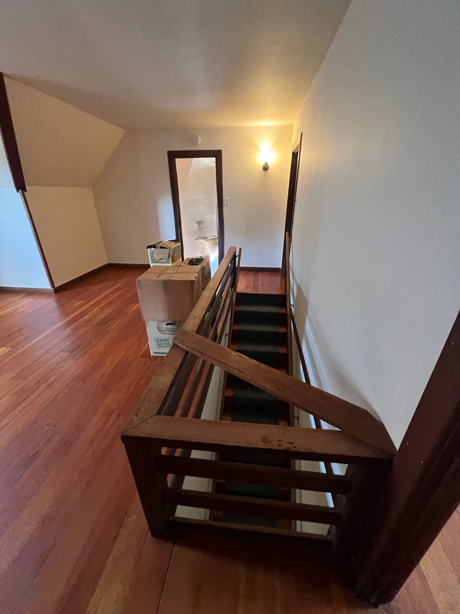 - All rooms: Removed wood interior doors in dining room & hallway, installed ceiling light for foyer, replaced ceiling lights throughout the house, installed smoke detectors, patched & painted walls, ceilings, trims & doors, rebuilt upstairs railings.