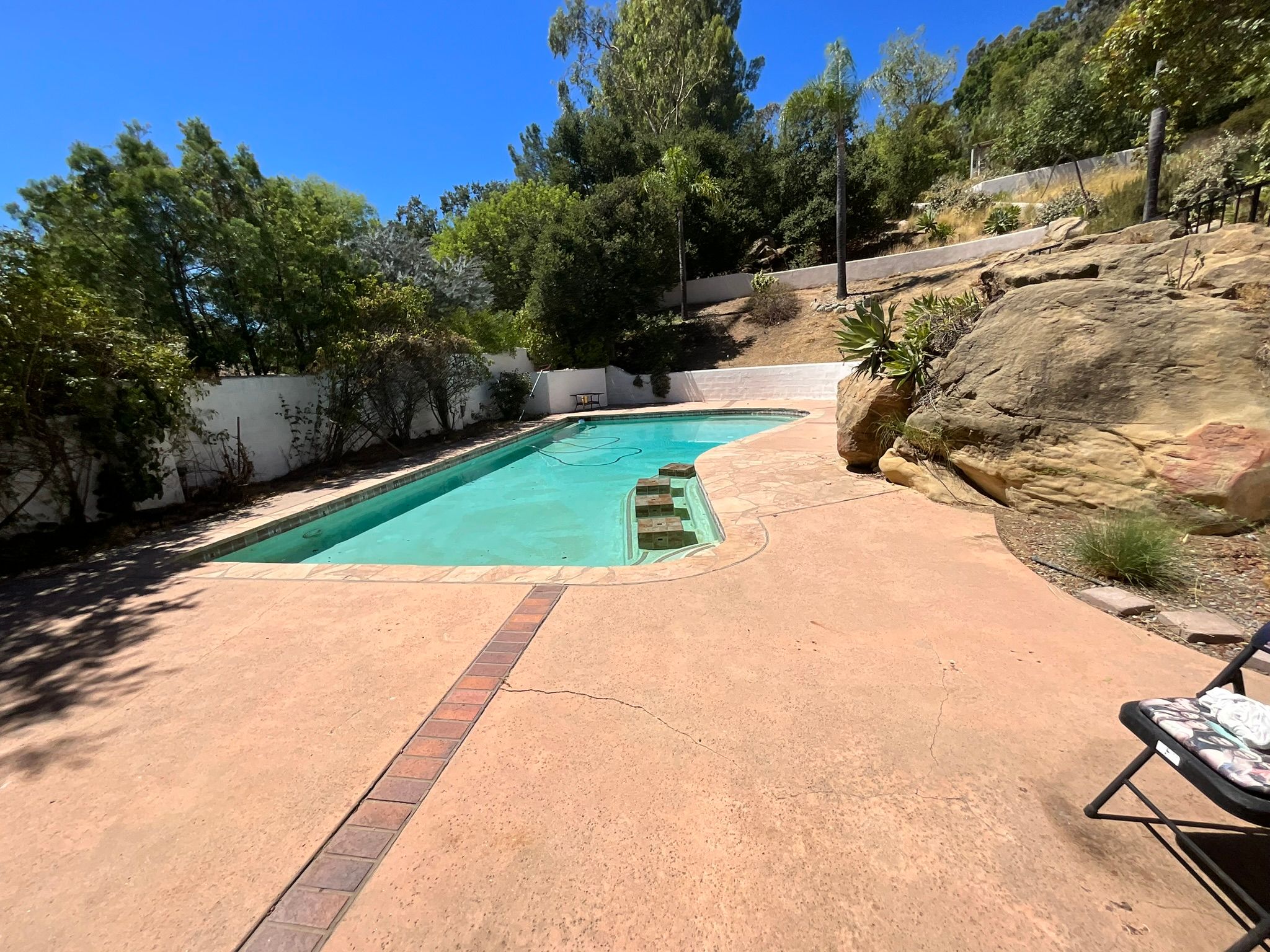 - Exterior: Power washed on all the stone paved areas in the backyard and side yard, trimmed all the plants/trees, removed all the dead branches, added mulch on the side yard, repaired the sprinklers and the broken main pipe, reconnected to the main controller, planted native plants around the poolside and front yard with new layer of soil and mulch