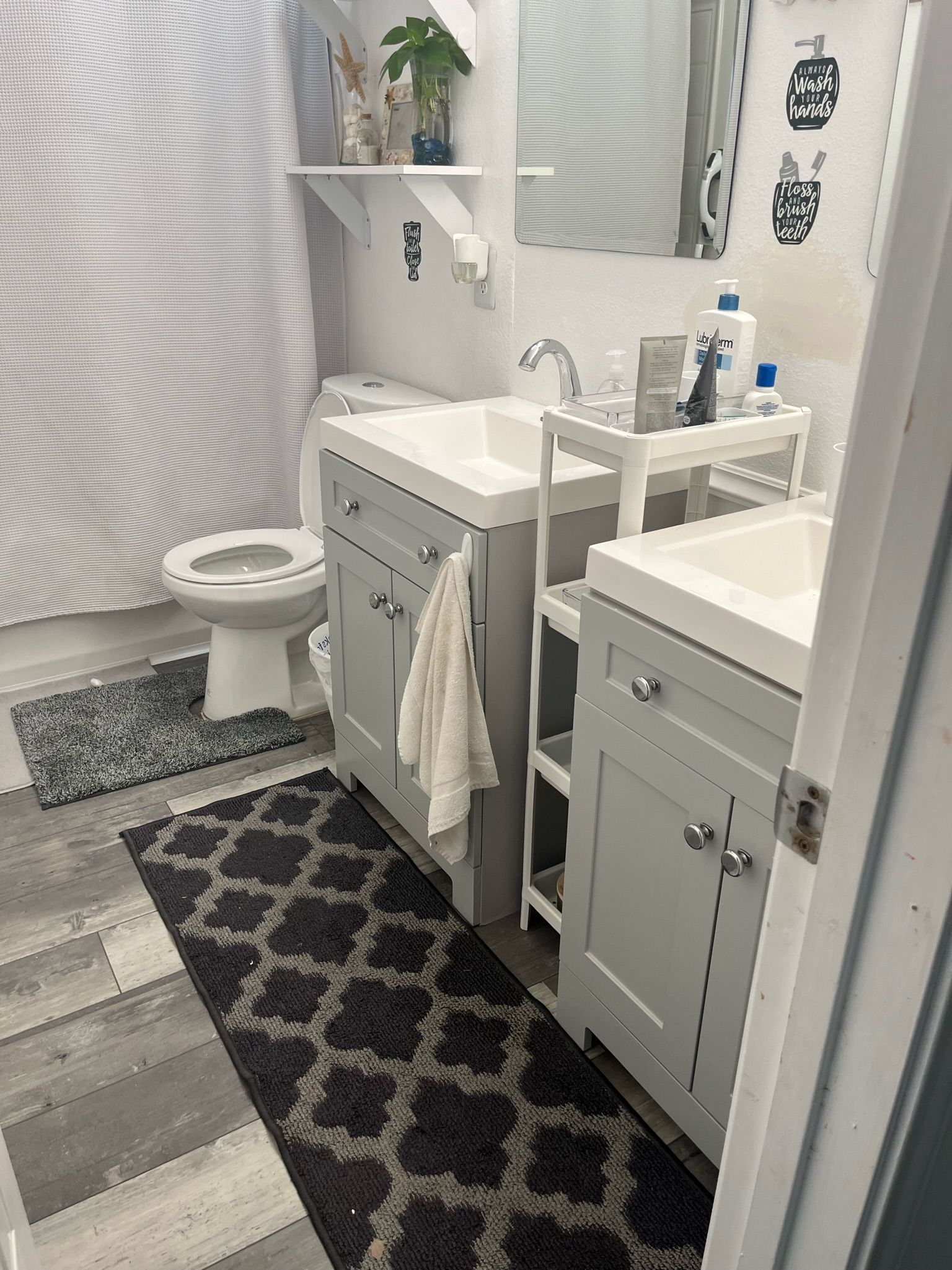 - Kitchen: Installed cabinets, installed undermount sink & faucet, moved electrical, reinstalled existing disposal, installed Quartz countertops, installed backsplash, ceiling repaired in kitchen